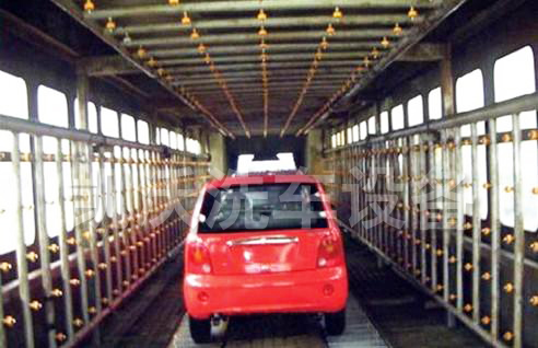 汽車(chē)淋雨線是車(chē)身密封檢測(cè)的重要裝置,主要由輸送板鏈、淋雨室、噴淋系統(tǒng)、吹干系統(tǒng)及控制系統(tǒng)組成。